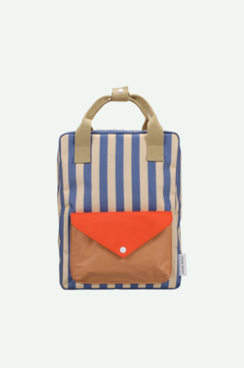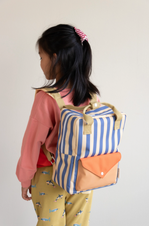 Sticky Lemon - Backpack medium - Envelope/Stripes blue whale/Sandy yellow