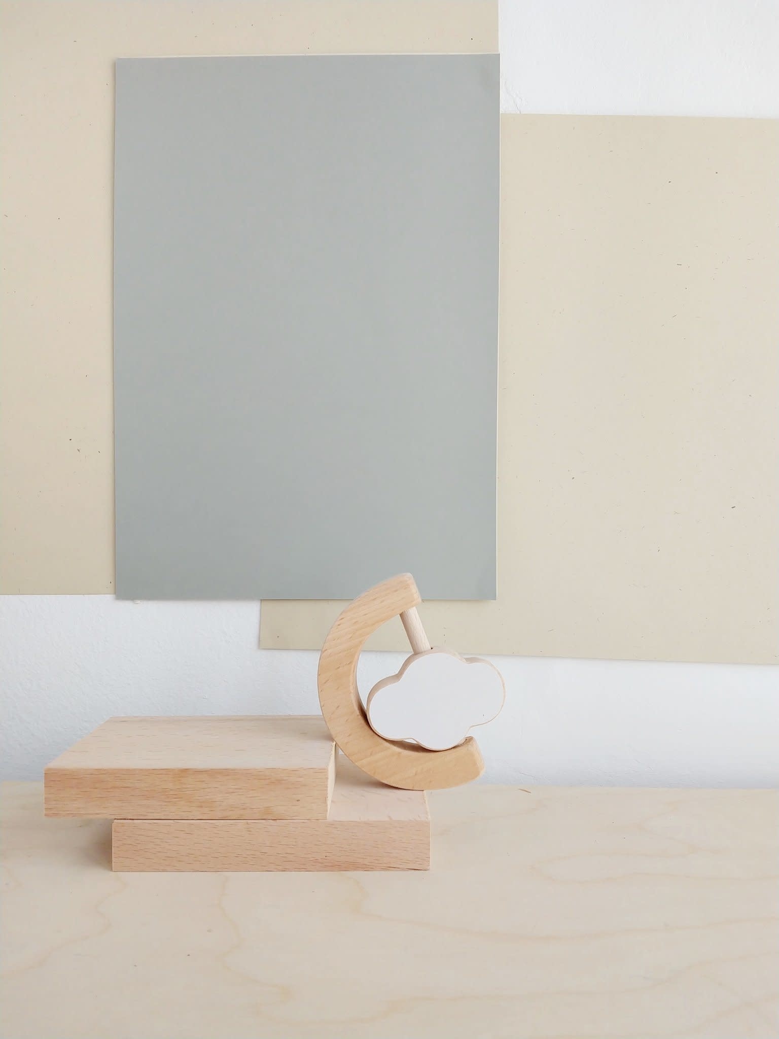 Our wooden teether and rattle toy for babies is a minimalistic yet playful design.