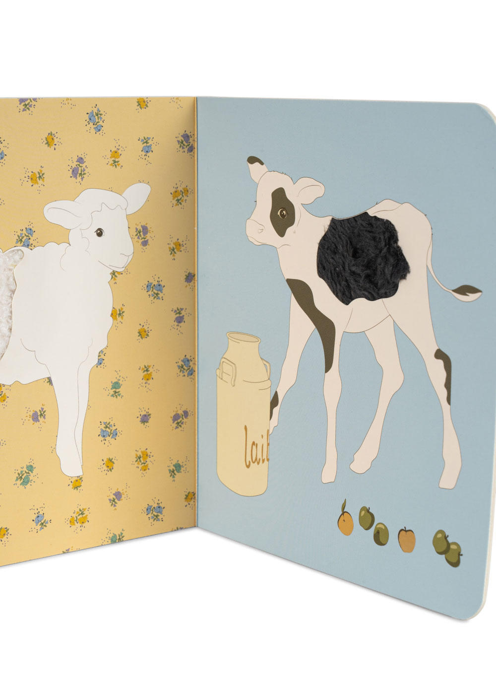Livre en carton épais, idéal pour explorer avec les petits doigts. Fait pour stimuler les sens avec des textures et des illustrations froissées, duveteuses et colorées.