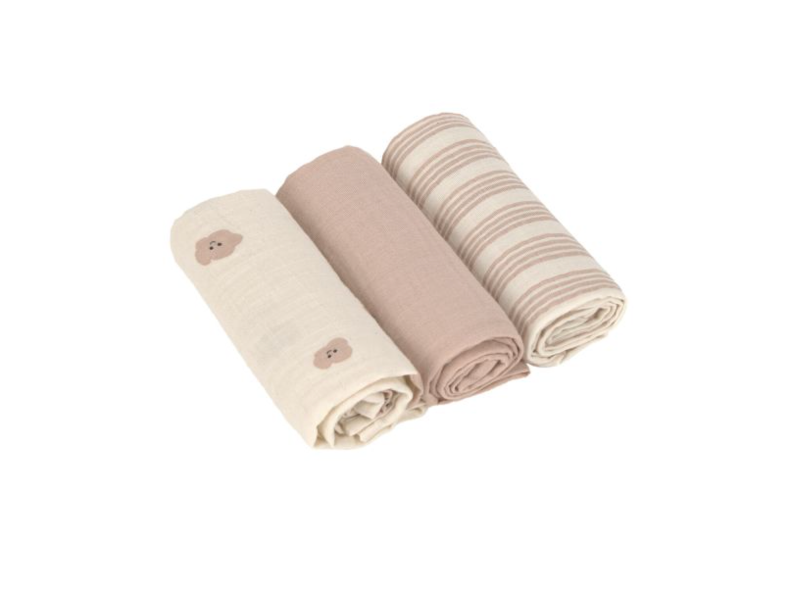 De doeken zijn gemaakt van ademend, huidvriendelijk katoen en hebben een formaat van 60 x 60 cm. Ideaal om je baby mee in te bakeren, als spuugdoekje, onderlegger of als licht dekentje in de kinderwagen. Dankzij de zachte structuur zijn ze prettig in gebruik voor zowel ouder als kind.