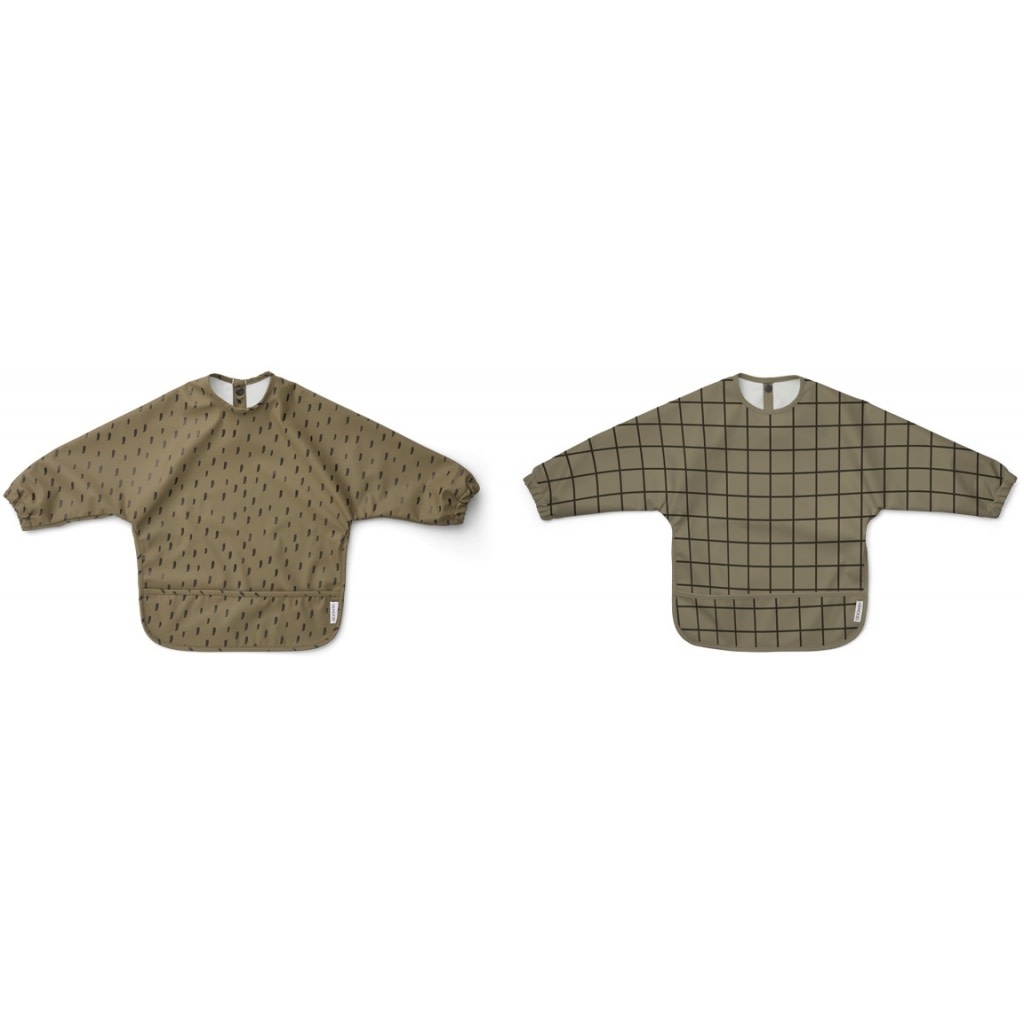 Liewood - Merle cape bib print - 2 pack - Check/graphic stroke khaki mix